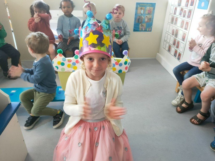 We vierden een speciaal moment in onze klas: de verjaardag van Arya! Ze werd 4 jaar, en dat konden we natuurlijk niet zomaar voorbij laten gaan. Vanaf het moment dat ze binnenkwam straalde ze - met een feestelijke kroon op haar hoofd en een grote glimlach op haar gezicht.