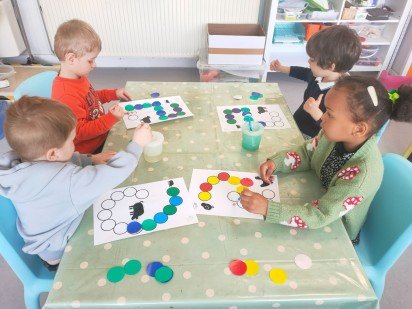 Natuurlijk werd er ook volop geknutseld! De peuters maakten een vrolijke paashaas en de 1ste kleuterklassers knutselden een broedende kip als paasmandje. Met verf, papier en lijm toverden ze de mooiste kunstwerkjes tevoorschijn.
